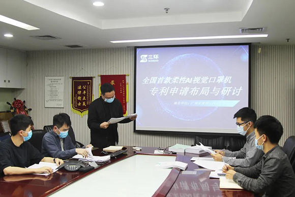 2020年初,新冠疫情來勢洶洶,不斷蔓延的疫情,讓防疫工作,成為重中之重。防疫物資成為了群眾的防火墻,醫生的生命線。疫情之初,停工停產之際,三環逆行而上,在做好安全防護的基礎上,三環專利代理師毅然前往口罩機研發生產企業,進行現場辦公,第一時間完成全國首款AI全自動口罩機的6項專利申請,有效促成口罩機的投產,助力形成了一條日產超15萬片的“生命線”。作為知識產權工作者,團隊雖不能像醫護人員一樣沖鋒在前,但仍能用智慧為一線醫護人員提供保障。