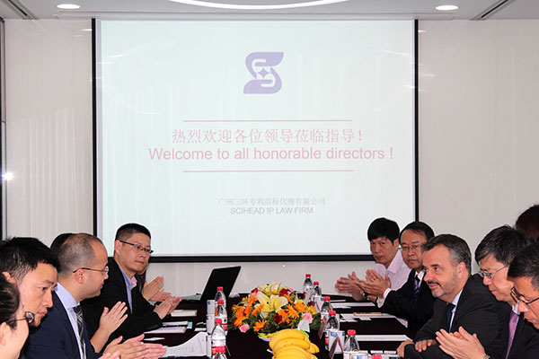 2017年6月14日上午,由中國國家知識產權局國際合作司吳凱司長帶隊,世界知識產權組織(WIPO)PCT法律司副司長Matthias Reischle-Park先生、PCT法律司高級法律官員俞志龍、國家知識產權局國際合作司二處董剛副處長、國際合作司二處項目官員陳文軍先生,在廣東省知識產權局協調與合作處調研員王開智和廣東省專利代理協會秘書長陳一忠的陪同下,一行7人赴我公司調研,我公司郝傳鑫總經理及PCT申請相關人員就PCT專利申請業務、系統的相關管理及改進等問題進行了將近兩小時的會議交流。會上俞志龍先生介紹了WIPO發布關于PCT申請的最新動態,之后我公司與會人員向各位領導匯報了我公司近年來PCT的申請情況及申請過程中遇到的問題并提出相關建議,各位領導就這些問題和建議給予了意見。